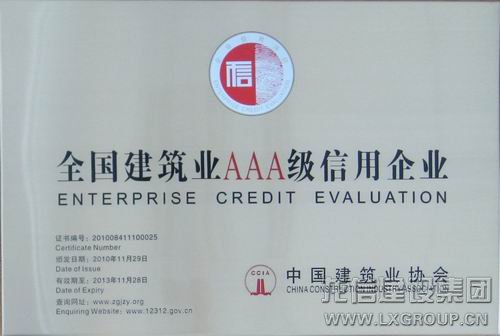 2013年獲得全國建筑業(yè)AAA級信用企業(yè)
