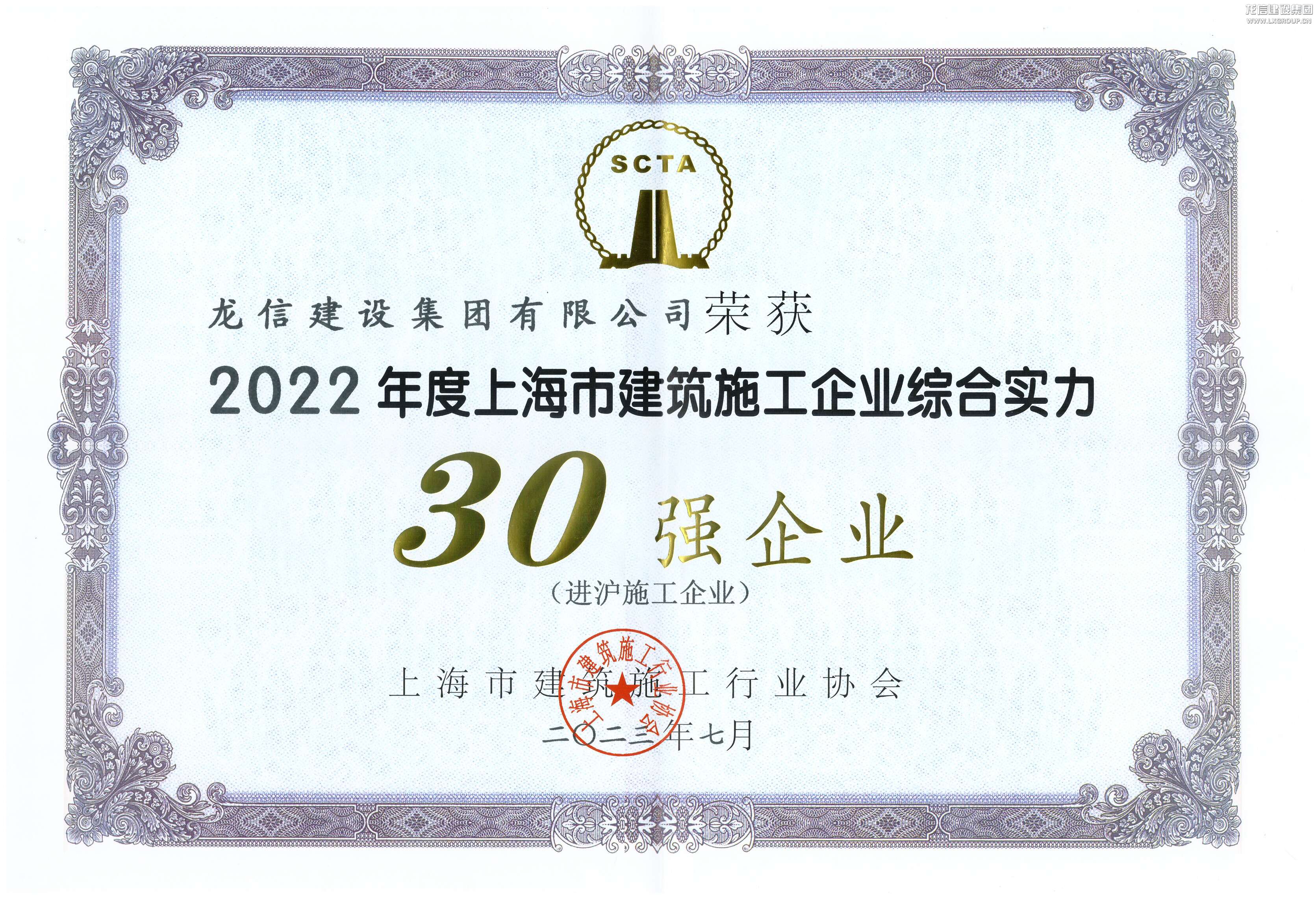 2022年度上海市建筑施工企業綜合實力30強企業