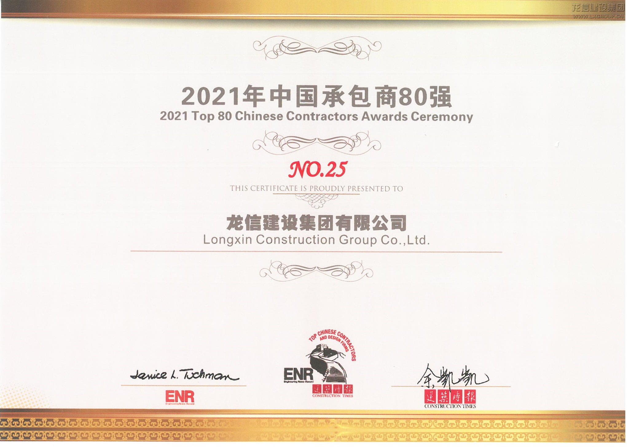 2021年中國承包商80強NO.25(證書)