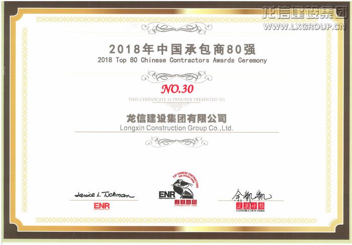 2018年度中國承包商80強