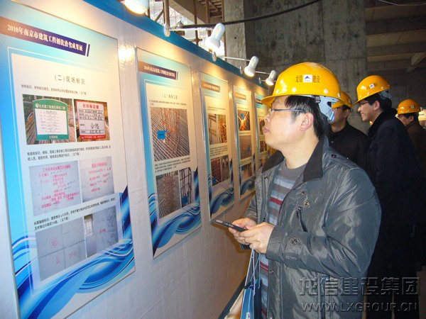 由江蘇省建設廳、南京市住建委和南京市質監站組織,2011222日建設部吳慧娟司長及隨行、省建設廳徐副廳長、省各市縣建工局、安監站、質監站領導300余人在南京市精品示范工程試點項目----龍信集團仁恒G53公寓項目部進行現場觀摩活動。集團公司董事長陳祖新、南京分公司經理江建明、項目部陳揚、朱福生、蔡春燕、葛玉林、徐向華、李雪平、張沖、朱永新等同志陪同、解說。