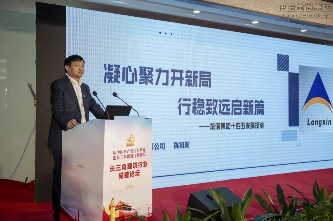 會(huì)上,陳祖新以《奮斗百年路 邁進(jìn)新時(shí)代 開拓新局面》為題,從建黨百年歷史回顧、黨建引領(lǐng)龍信發(fā)展以及開拓龍信新局面三方面展開交流發(fā)言。他說,龍信集團(tuán)通過長期積累與探索,不斷完善黨的基層組織體系、黨建管理體系和運(yùn)營考核體系,形成具有特色的《新時(shí)代龍信集團(tuán)黨建工作法》,確保龍信集團(tuán)的黨建工作與企業(yè)發(fā)展、生產(chǎn)經(jīng)營、企業(yè)文化、群團(tuán)工作、人才發(fā)展等各項(xiàng)建設(shè)深度融合。“十四五”期間,龍信將繼續(xù)緊隨國家發(fā)展步伐,聽從黨的指示,不忘初心、堅(jiān)定不移地做一個(gè)有理想、有抱負(fù)、對(duì)社會(huì)負(fù)責(zé)任的企業(yè),積極探索和發(fā)展綠色建筑、裝配式建筑、智慧建筑,努力成為新時(shí)代構(gòu)建新發(fā)展格局,推動(dòng)長三角建筑業(yè)高質(zhì)量發(fā)展的生力軍。