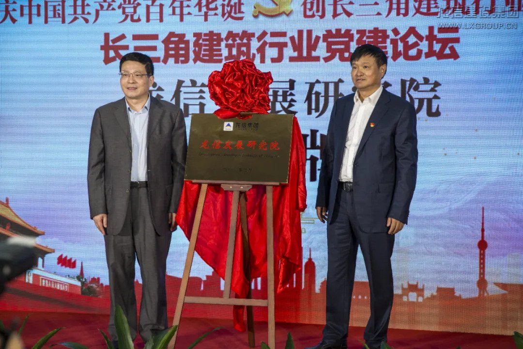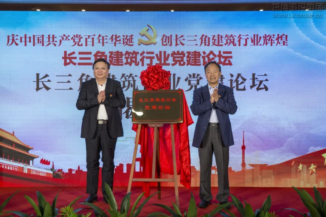 南通市委組織部副部長、市委“兩新”工委書記陸國強(qiáng)(左),原中共中央黨校(國家行政學(xué)院)副校長(副院長)、教授、博士生導(dǎo)師周文彰(右)共同為長三角建筑行業(yè)黨建論壇揭牌
