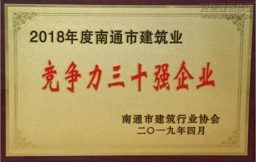 龍信集團位列“南通市建筑業競爭力三十強企業”第位,董事長陳祖新獲得“南通市建筑業優秀企業家”稱號,總經理唐愛東獲得“南通市建筑業優秀企業經理”稱號。