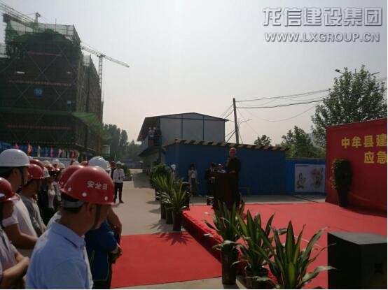 2018 年 4 月 27 日上午,中牟縣住建局在龍信集團(tuán)鄭州路勁九郡·天籟園項目組織開展“中牟縣建筑工地安全生產(chǎn)事故應(yīng)急救援與處置演練”現(xiàn)場觀摩活動。參加本次演練的領(lǐng)導(dǎo)有:中牟城建局的張伍發(fā)局長、袁喜亮局長、郝曉剛站長、安監(jiān)局的王夢醒局長、姚美霞局長,路勁產(chǎn)業(yè)集團(tuán)總經(jīng)理宋國棟,龍信集團(tuán)十二分公司經(jīng)理郭東升,路勁九郡?天籟園項目執(zhí)行經(jīng)理沈忠衛(wèi),山東省建設(shè)監(jiān)理咨詢有限公司的領(lǐng)導(dǎo)及項目相關(guān)監(jiān)理人員。