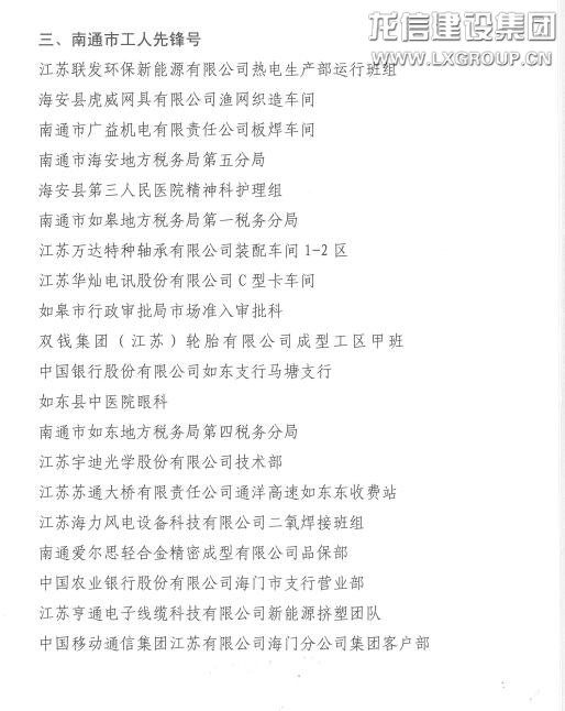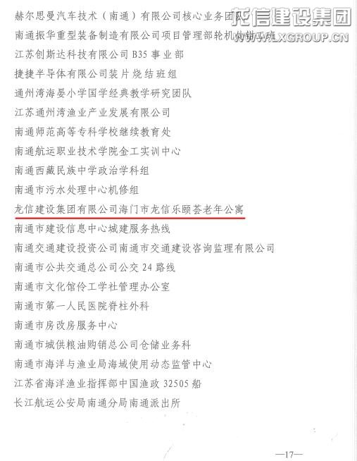 4月28日,南通市慶祝“五一”國際勞動(dòng)節(jié)暨五一勞動(dòng)獎(jiǎng)命名大會(huì)在市行政中心報(bào)告廳隆重召開。市委常委、組織部部長馮軍,市人大常委會(huì)副主任、市總工會(huì)主席葛玉琴,市政府黨組成員、市勞動(dòng)競賽委員會(huì)主任朱晉,市政協(xié)副主席陳宋義等領(lǐng)導(dǎo)出席會(huì)議。會(huì)上宣讀了《關(guān)于命名南通市五一勞動(dòng)獎(jiǎng)狀獎(jiǎng)?wù)潞湍贤ㄊ泄と讼蠕h號(hào)的決定》,一大批為推動(dòng)我市經(jīng)濟(jì)社會(huì)高質(zhì)量發(fā)展做出突出貢獻(xiàn)的先進(jìn)集體和先進(jìn)個(gè)人被命名。龍信集團(tuán)樂頤薈老年公寓榮獲“南通市工人先鋒號(hào)”,工會(huì)主席卞勤華出席會(huì)議并領(lǐng)獎(jiǎng)。