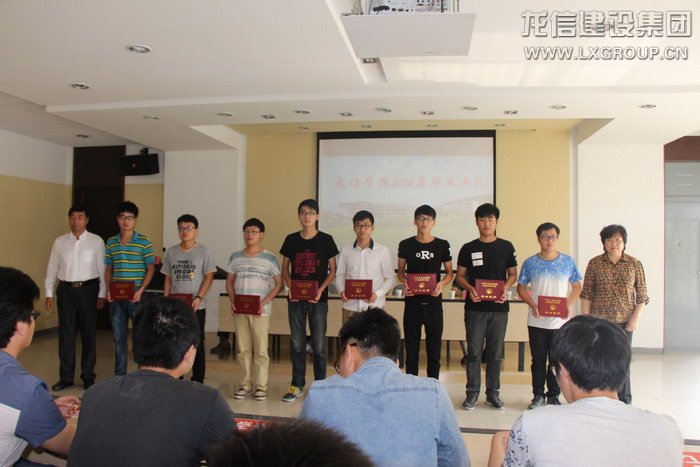 隨后卞主席代表龍信集團做了簡短的講話。由衷的感謝江蘇建院,感謝校領導為我們龍信班的啟動做了很多的宣傳工作,推薦了一批優秀的學生;感謝建院的老師們帶出了一批出色的畢業生。感謝在座同學們對我們公司的信任,從組建龍信班開始參與公司的各項教學活動。其次簡單了回顧了公司校企合作的發展歷程,最后寄語龍信學院畢業生,希望同學們在今后的工作崗位上不斷的超越自己,在總承包施工領域,成為具有良好職業素養、職業技能和管理能力的復合型高技能人才。畢業意味著人生一段新的旅程的開始,衷心的祝愿大家能在龍信這個大家庭中都能成為最好的自己。