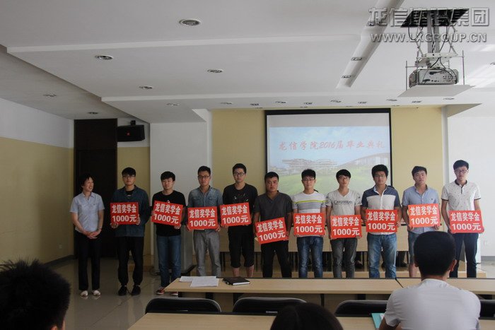 首先,卞勤華主席宣讀了龍信集團獎學金、助學金表彰文件,黃麗英為孫曉東等10名龍信獎學金獲得者和靳招利等10名龍信助學金獲得者頒獎。孫校長和卞主席為畢業生代表頒發畢業證書。