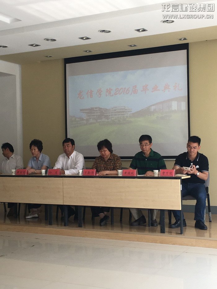 2016年6月7日上午,龍信學院“2+1”模式第二期畢業典禮在江蘇建筑職業技術學院利亞樓報告廳舉行。集團公司工會主席卞勤華、人力資源部黃麗英、江蘇建院校長孫進、建工學院陳年和院長、黨委書記黃國斌等領導和58名2016屆龍信學院畢業生參加典禮。