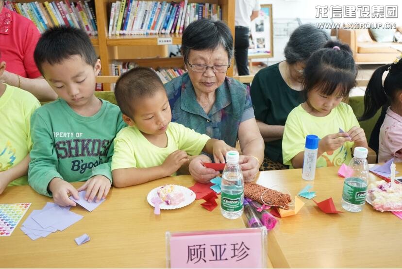 圖為小朋友與長者們一起制作手工