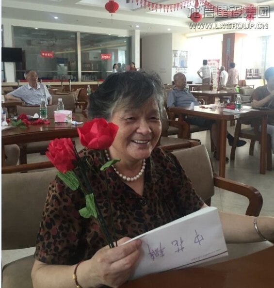 活動現場,工作人員為長者們準備了制作玫瑰花的材料,長者與工作人員合作,將零散的花瓣一片一片的粘貼在一起,漸漸地有了花的形狀,花瓣緊緊的圍繞著花蕊,好似一群孩童擁圍著媽媽。