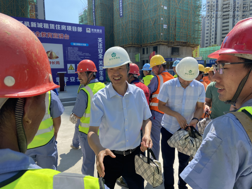 8月15日上午,南京市委副書記、市長韓立明一行來到南京市燕子磯新城租賃住房項目考察調研及向一線工人進行慰問。南京安居集團黨委書記、董事長毛龍泉,副總經理劉建石,南京安江置業法人代表郁露,南京燕子磯新城建設指揮部負責人周華山,南京蘇寧建設工程咨詢有限公司董事長蔣溶泉,龍信建設集團黨委書記、董事長陳祖新,副總經理江建明一行共同接待。