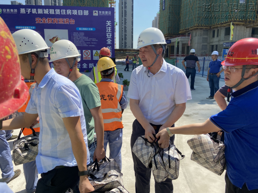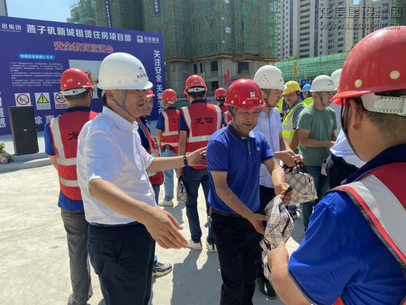 最后,韓市長一行與燕子磯新城租賃房項目經理楊洋及一線工人代表進行了交談,向奮戰在一線的建設者表示了感謝,并給他們送去了一絲清涼。