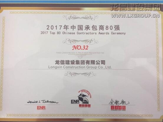 11月30日,由美國(guó)《工程新聞紀(jì)錄》(ENR)和中國(guó)《建筑時(shí)報(bào)》共同主辦的2017“中國(guó)承包商80強(qiáng)和工程設(shè)計(jì)企業(yè)60強(qiáng)”頒獎(jiǎng)典禮在蘇州隆重舉行。龍信集團(tuán)榮列“中國(guó)承包商80強(qiáng)”第32位,這已是我集團(tuán)連續(xù)第9年入圍該榜單,充分展現(xiàn)了集團(tuán)優(yōu)秀的品牌形象和較強(qiáng)的綜合實(shí)力。