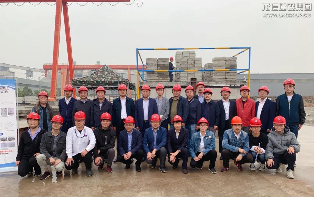 會議介紹了龍信集團密拼鋼筋桁架混凝土疊合板關鍵技術和預應力混凝土鋼筋桁架疊合板研發與應用;會后,與會專家一行前往密拼疊合板堆載試驗現場參觀,龍信集團技術中心首席專家趙勇對密拼疊合板堆載試驗情況和預應力疊合板生產情況作了詳細介紹。