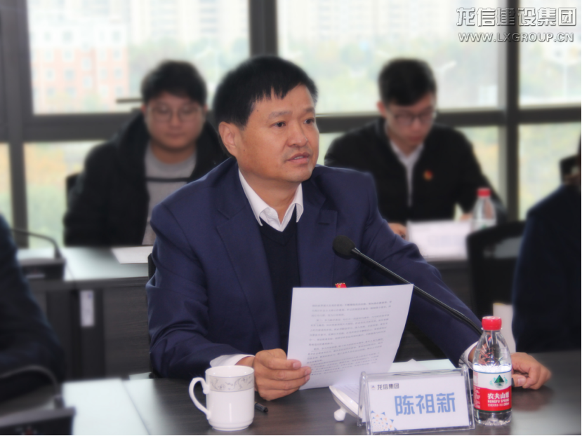 2019年11月29日,中國共產主義青年團龍信建設集團有限公司委員會第一次團員代表大會在龍信大廈5樓會議室召開,中國共產主義青年團海門市委員會書記張凱華,中國共產主義青年團海門市委員會辦公室主任袁媛,龍信集團黨委書記、董事長陳祖新,龍信集團黨委副書記、總裁唐愛東,龍信集團黨委副書記、工會主席蔡颯爽,集團總部及分子公司39名團員代表共同出席會議。